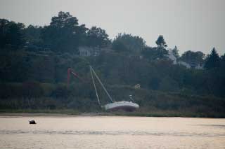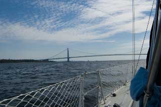 After spending an amazing week in NYC seeing friends and the sights, it is time to return to more traditional cruising. With 9-12’ seas predicted along the New Jersey coast due to Hurricane Helene, we head for the protection of Atlantic Highlands just inside Sandy Hook, NJ. We plan to wait here until the seas are more manageable. Atlantic Highlands is known as a protected anchorage, although wrecked boats in the harbor serve as a sad and chilling reminder of the risks of life at sea. I meet a man removing his personal property from a wrecked Beneteau. According to him, a convergence of weather systems including the effects of Hurricane Ernesto created a freak storm that caused 28 boats to break free of their moorings. All but 3 are total losses. The town itself is a cruiser’s dream… within walking distance of a free dinghy dock are a playground, laundromat, hardware store, automotive store, marine supply, post office and supermarket. Fish are jumping around the boat every night. The harbor is filling up with cruising boats from around the world. We meet a nice couple from |