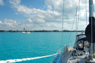 Today is a life maintenance day. Megan is determined to get laundry done at the “laundramat” at Black Point Settlement. Word is spreading among the cruisers that But we need to take on fuel and water at Staniel Cay Yacht Club first. I make preparations by dumping our jerry jugs of diesel that we carry on the rail into the main tanks and adding fuel treatment to the jugs for the new fuel we’ll take on. I also top up the sunshowers with the free rain water we still have from the druglord’s cistern to make room for the R/O water we’ll get at Staniel Cay Yacht Club. R/O water is seawater that has been ultra-purified through reverse osmosis filtration. It is better than most bottled water and is about all that is available out here. The downside is that we have to buy it at $0.40/gal. We finally raise the anchor at 9:30 and get to the fuel dock. Back on the waterway, we had refueling and re-watering stops down to about a 15 minute operation. This stop takes an hour and a half while we wait for a dockhand, wait for the water to be turned on, wait for this and wait for that. Megan is beside herself – don’t they realize we have laundry to do! When I go to pay for the diesel, the gas for the dinghy and the water, I get a taste of the creative accounting that we’ve found can go on at the cash registers on Staniel. Our 5 gallon gas jerry jug was only ¾ empty yet somehow took a full 5 gallons. Our 70 gallons of water tanks managed to hold 80 gallons of water. With all these “extras” the bill came to $106 which exceeded the $100 I had brought with me to the register. By the time I got bachk to the register with $110 another clerk tallied the bill to $113! Yesterday Megan had a similar experience buying groceries at the Pink Store. The prices weren’t marked and seemed to vary depending on how much cash was visible to the shopkeeper. Another cruiser told us that the shopkeeper had spotted they had a $100 bill. Miraculously without benefit of a calculator their bill was calculated to be $99.50. Finally at 11:00 we’re leaving the fuel dock. The current is strong and there’s a beautiful classic sailboat behind us at the dock. It’s difficult to get off the dock but we do fine. However, after our docking debacle in Finally 12:30 we arrive at Black Point. The boys and I drop Megan off at the laundramat’s dinghy dock (how many places in the world can you find a laundramat with a dinghy dock?) and return to Grace. The boys nap. I “read the mail” (slang for listening in on conversations carried on over the VHF radio and something everyone does) and spend a little time waxing the topsides trying to erase some of the remaining minor surface traces of our Nassau docking incident. |